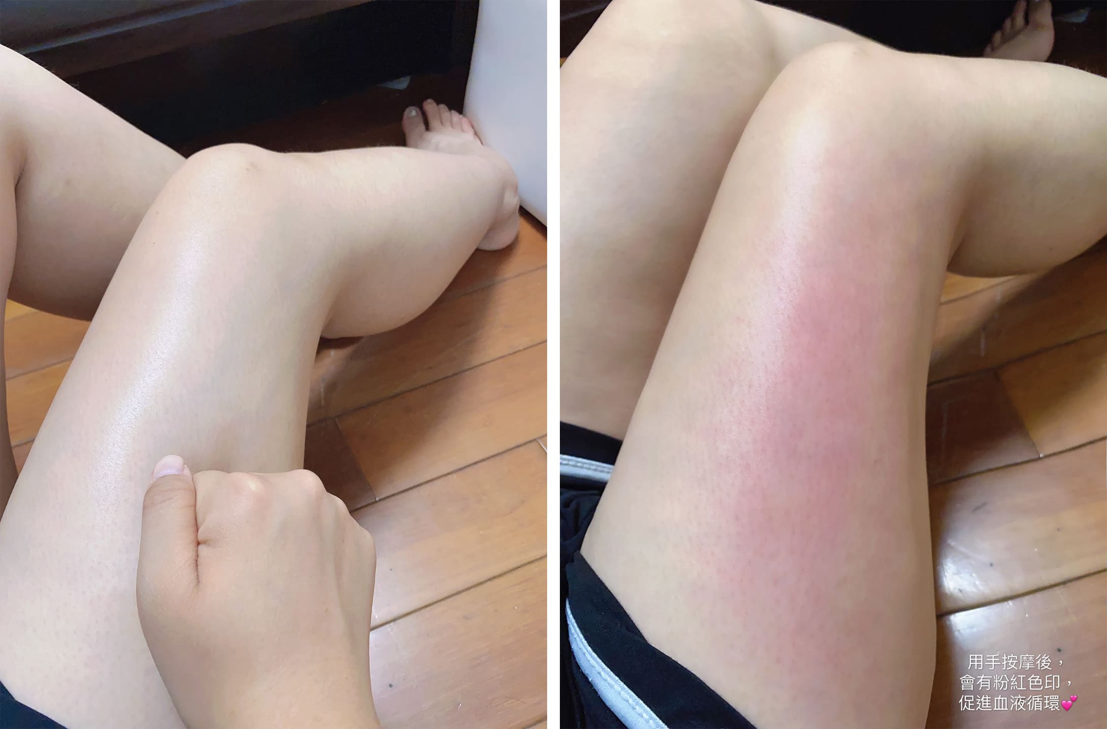 你們看!!這是我按摩後腿部已經有紅印,代表裡面的血液循環開始啦!!!