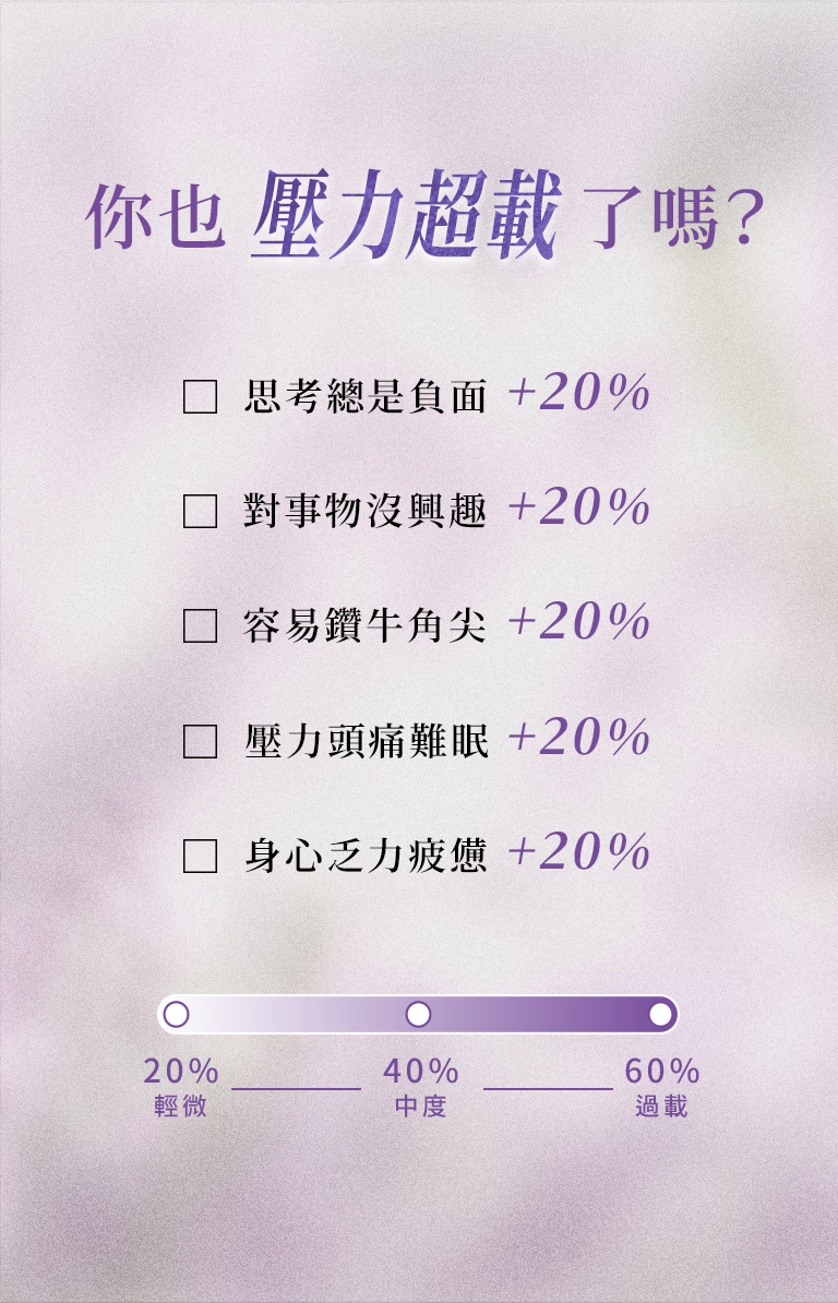 無齡:精神壓力大、情緒躁動、易頭痛或肩頸緊繃者